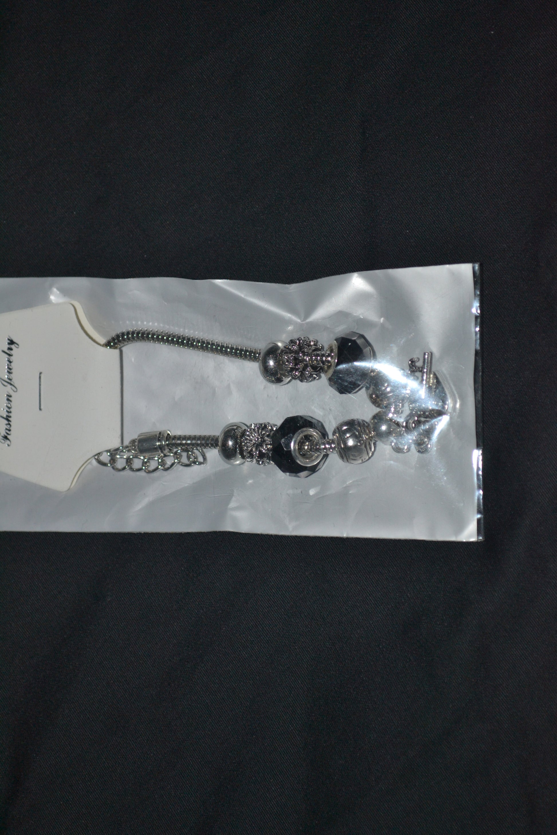 Edgy yet elegant, this bracelet combines black faceted beads with antique- style silver charms. A go to for minimalist and monochrome outfits