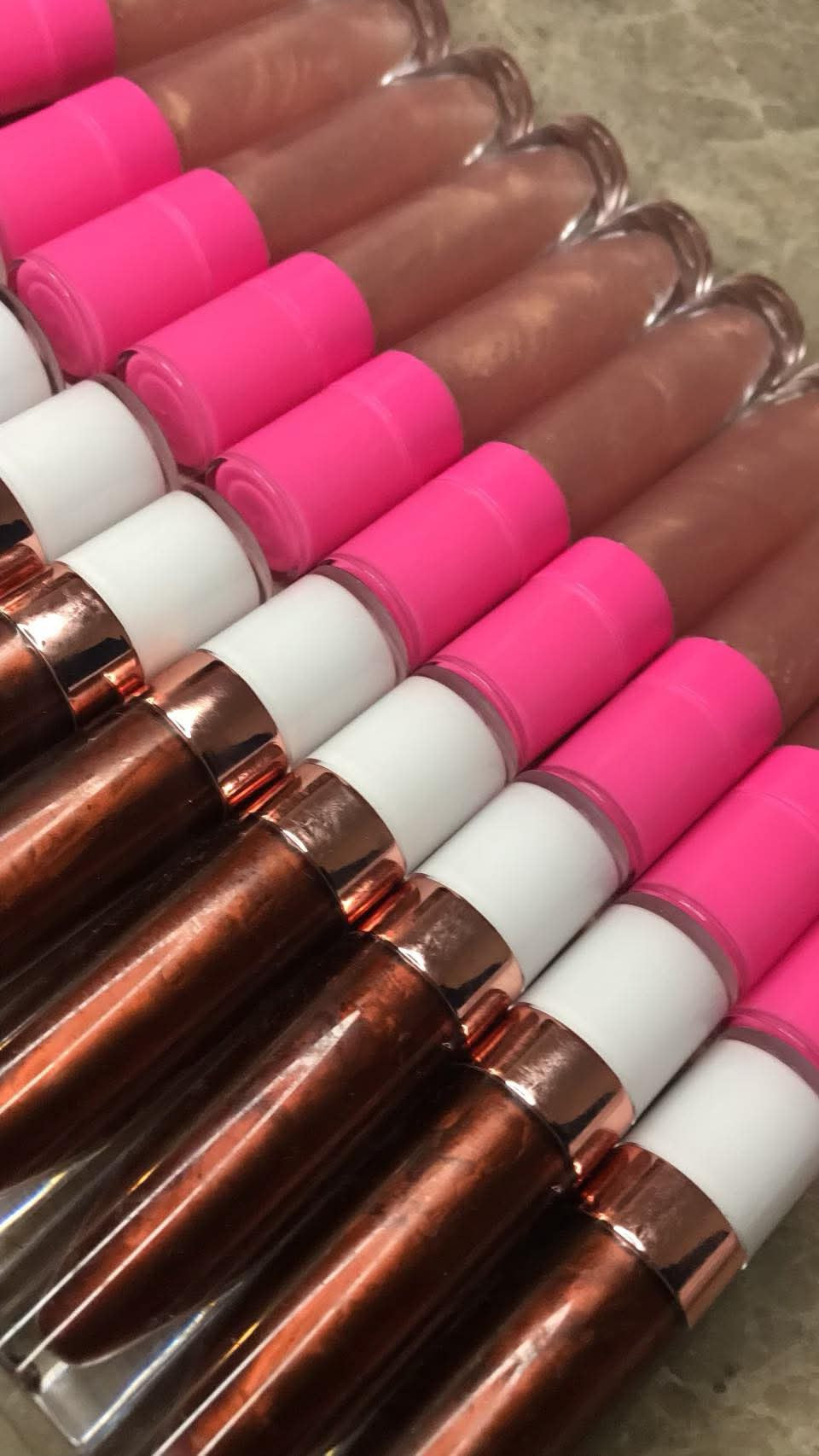 Lipgloss Base, Organic Coconut Oil, Mineral Oil, Cosmetic Grade Pigment Powder, Cosmetic Grade Mica Powder