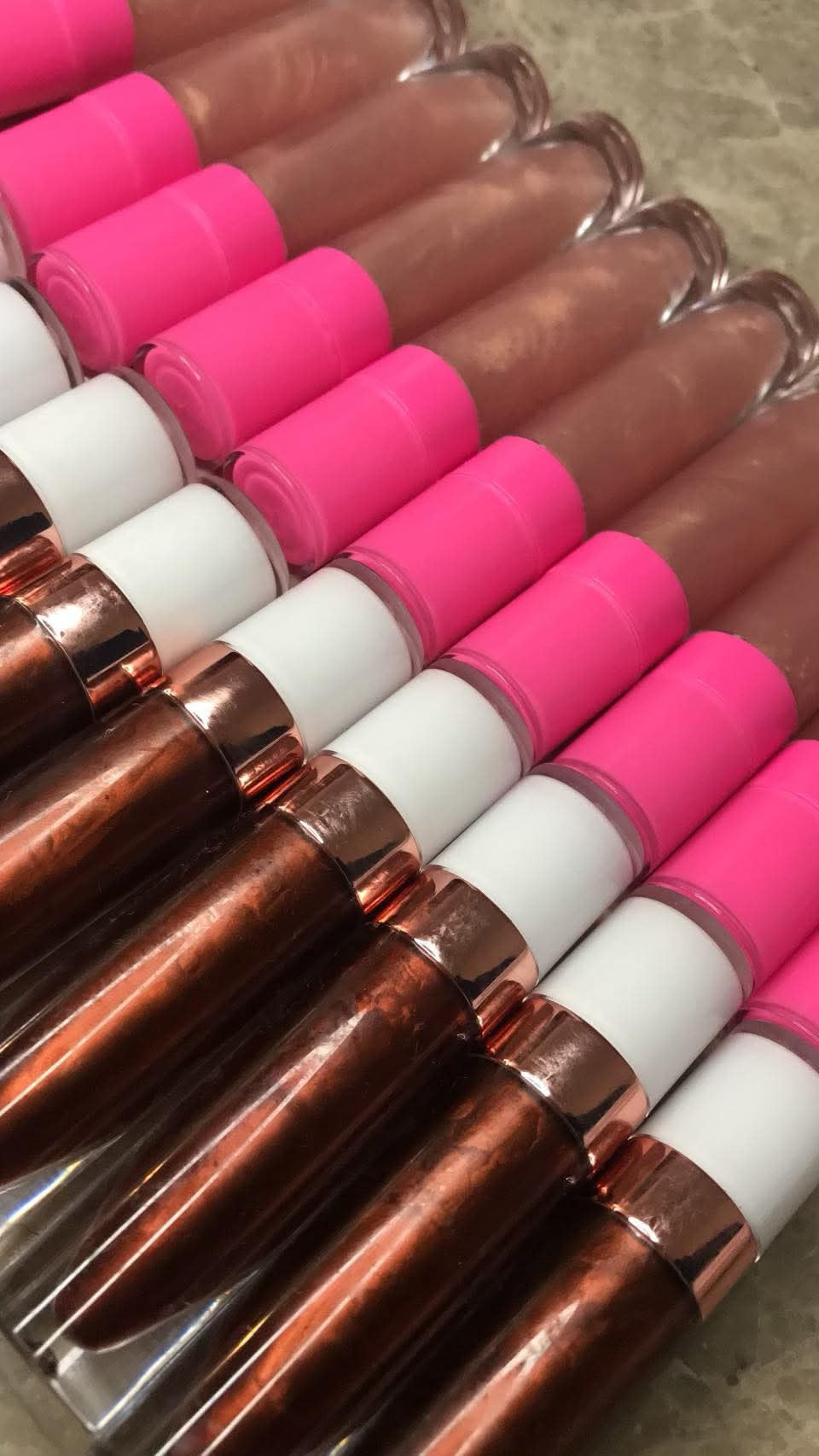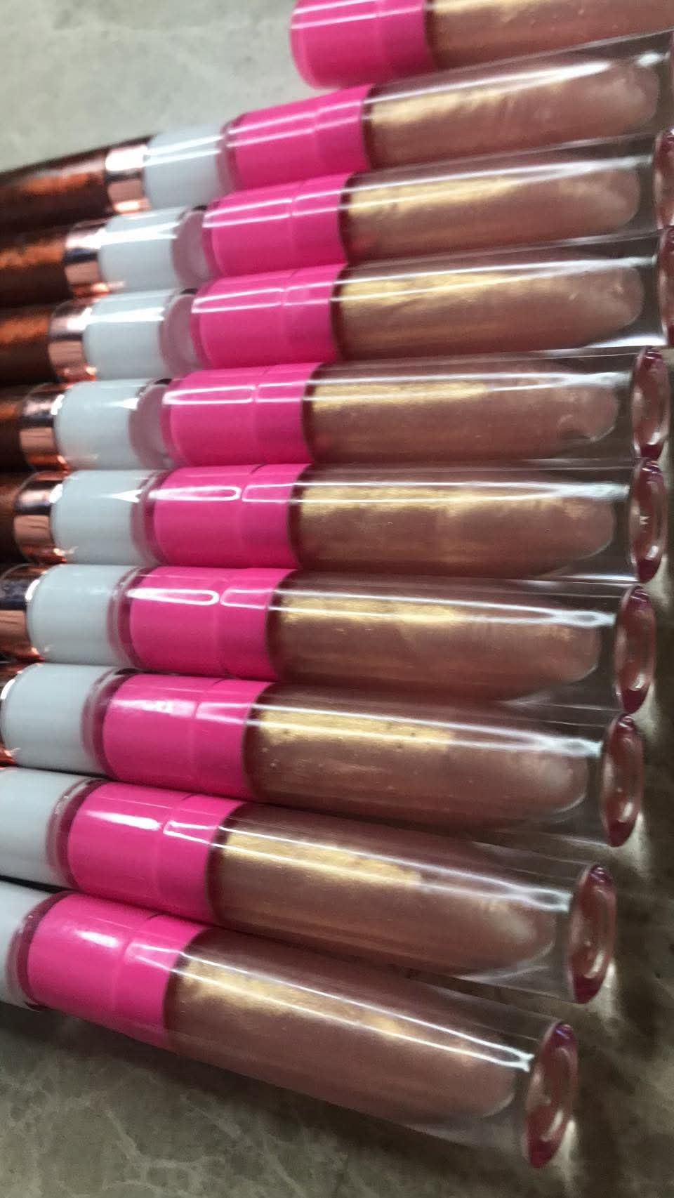Lipgloss Base, Organic Coconut Oil, Mineral Oil, Cosmetic Grade Pigment Powder, Cosmetic Grade Mica Powder
